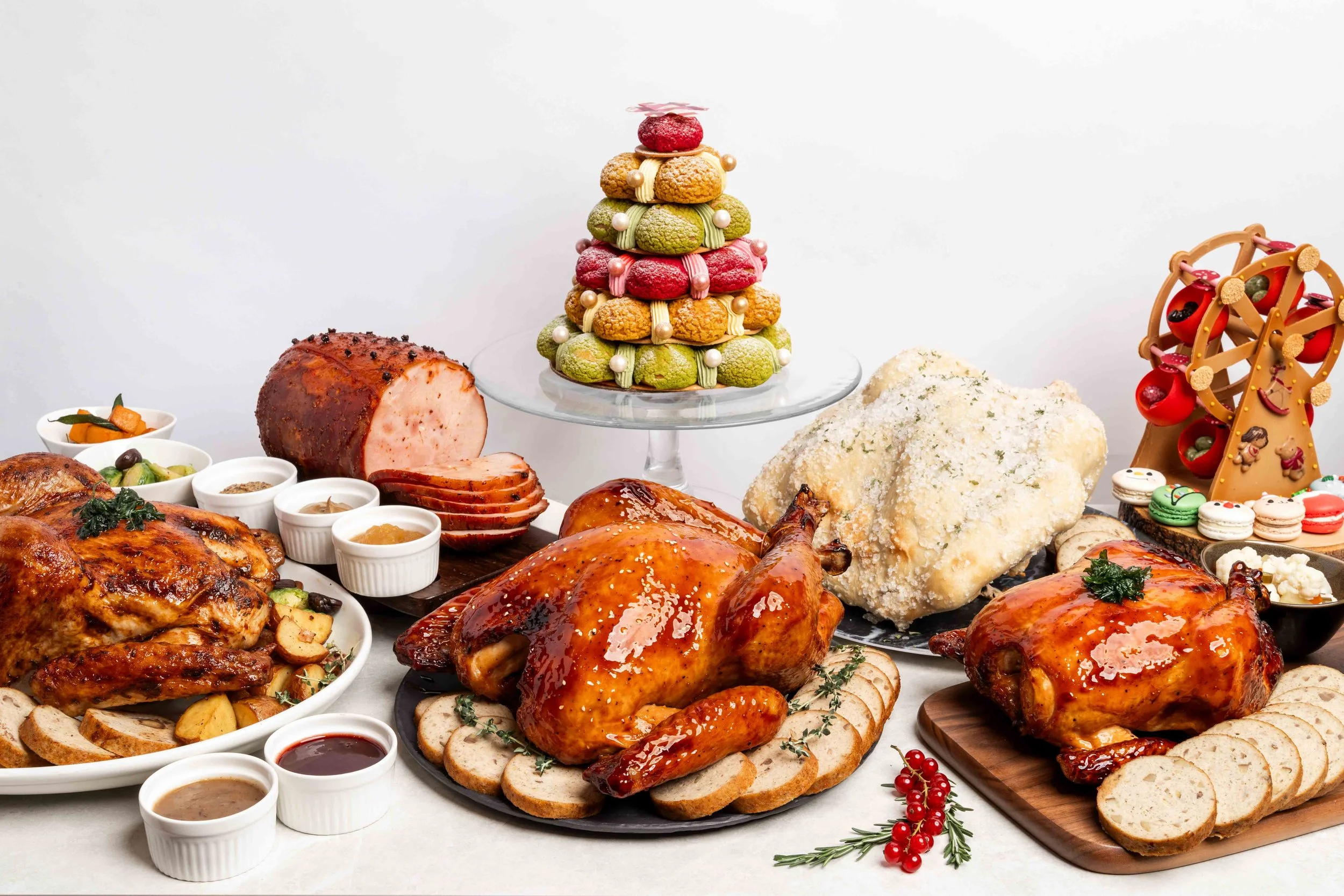 The desserts and turkey dishes became social media favourites—especially the Rainbow Choux Tower and Tropical Log Cake