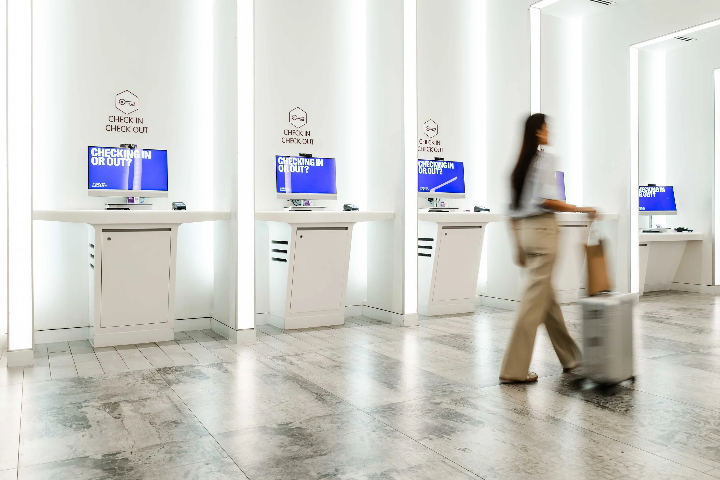 ✈️ Self Check-In Reception Area – seamless guest tech experience